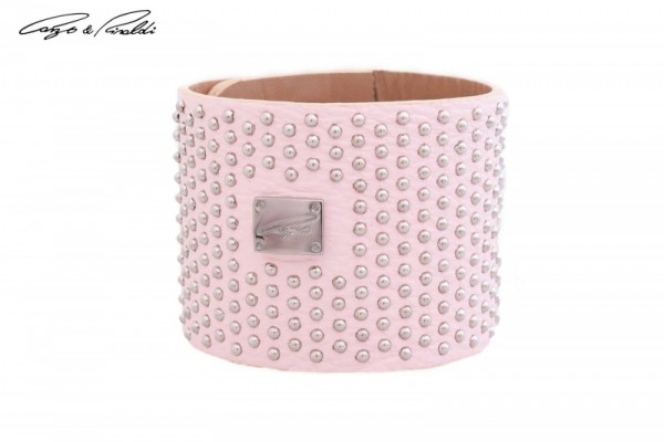 1654-es cikkszámú Cango&Rinaldi karkötő. A termék a 2018-as Dukai Regina kollekció részét képezi. A karkötő púder cervo színű minőségi olasz bőrből készült, mely nikkel színű fém szegecsekkel díszített. Teljes hossza 205 mm, mely 2 méretben állítható: 1. méret 175 mm, 2.méret: 190 mm; szélesség: 50 mm. A karkötőn nikkel színű fém tábla található Cango felirattal, jelezve ezzel a brand eredetiségét és minőségét!
