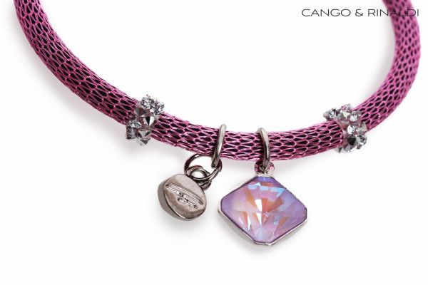 1859-es cikkszámú Cango&Rinaldi huzalból készült karkötő rózsaszín színben. A karkötőn nikkel színű fém foglalatban különleges csiszolású és formájú rózsaszín opál színű kristállyal- valamint fehér színű Crytal Rock kövezéssel díszítve. Nikkel színű mágneses záródással. A karkötőn egy nikkel színű, fém Cango felirattal díszített charm található, jelölve ezzel a brand eredetiségét és minőségét.