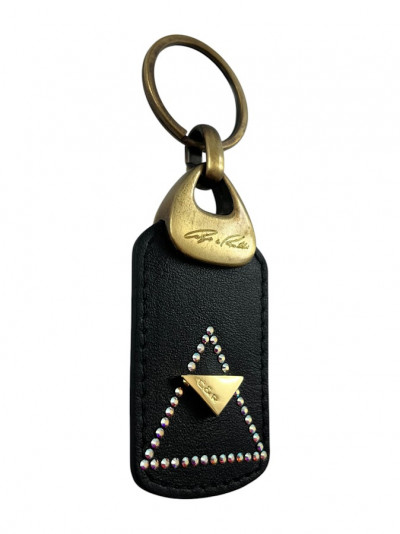 Cango&Rinaldi kulcstartó fekete színű minőségi olasz bőrből, óarany színű fémkellékkel, színváltós (AB) színű, mesh Swarovski kristályokkal díszítve.