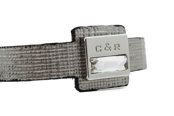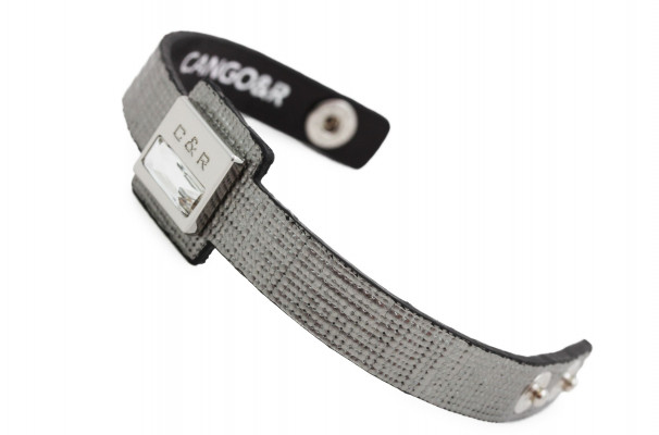 MC01K cikkszámmal ellátott Cango&Rinaldi karkötő minőségi olasz bőr alapanyagból, mintás ezüst színben. Az ékszer közepén található nikkel színű fémkellék fehér színű téglalap alakú különleges csiszolású kristállyal került díszítésre. A karkötő patenttal két méretben záródik. 1-es méret: 170 mm; 2-es méret: 185 mm.