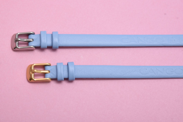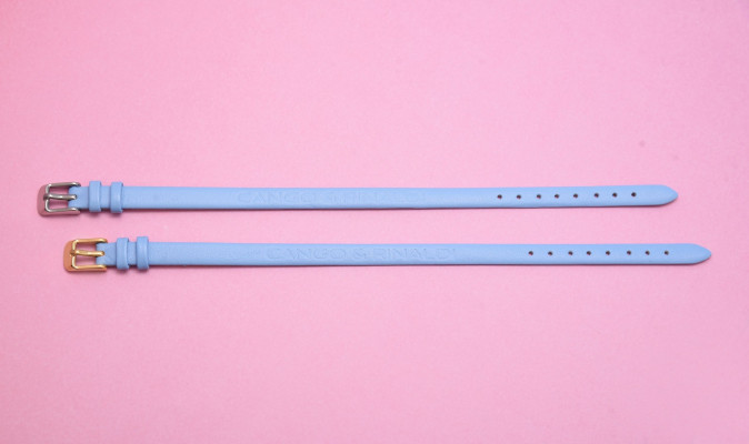 Cango&Rinaldi világoskék színű olasz bőr pánt a - Charm Kollekcióból - mely nikkel színű fémkellékkel készült. Ez a karkötő egyedi és személyes stílust kölcsönöz viselőjének. A karkötő lehetővé teszi, hogy a viselő a charmokkal egyedi emlékeket és történeteket osszon meg.