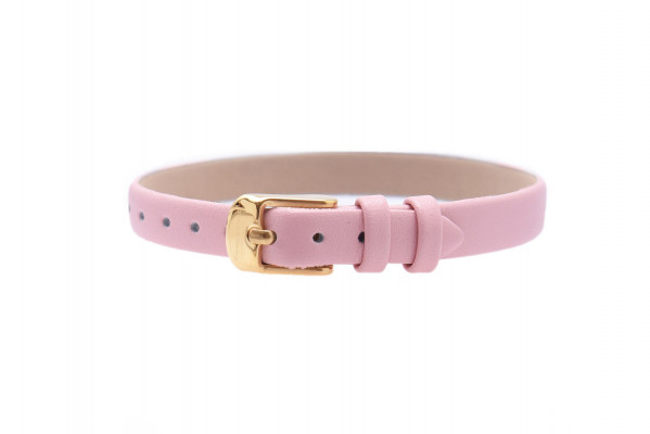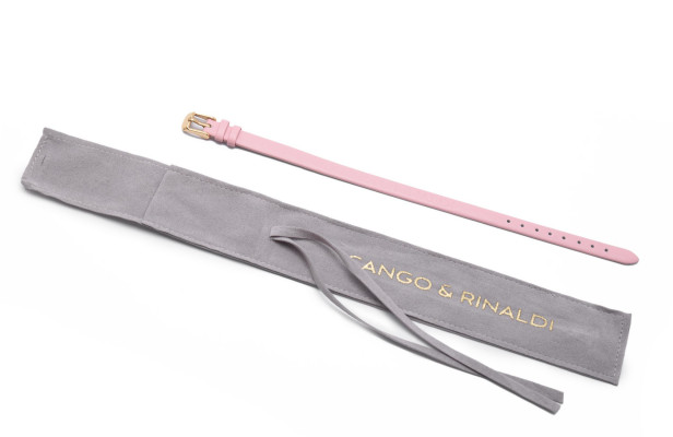 Cango&Rinaldi rózsaszín színű olasz bőr pánt a - Charm Kollekcióból - mely arany színű fémkellékkel készült. Ez a karkötő egyedi és személyes stílust kölcsönöz viselőjének. A karkötő lehetővé teszi, hogy a viselő a charmokkal egyedi emlékeket és történeteket osszon meg.