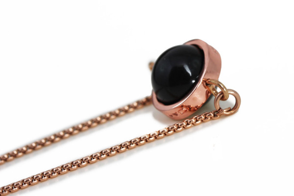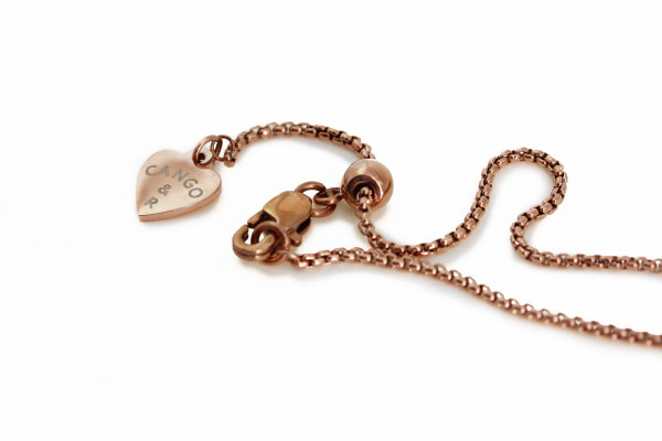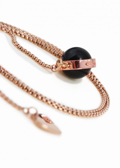 PLAN01NY cikkszámú Cango&Rinaldi nyaklánc a ,,Planet" kollekcióból. Rose gold színű láncon Cango&Rinaldi gravírozással ellátott gyűrű foglalatban fekete szinű gyöngy található. A nyaklánc teljes hossza 480 mm mely egy kapoccsal összekacsolható és egy Cango&R márkajelzéssel ellátott charm-mal díszített csúszó fémzárral bármilyen méretben állítható.