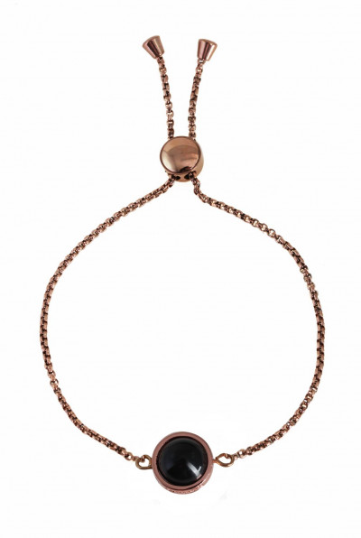 PLAN01K cikkszámú Cango&Rinaldi karkötő a ,,Planet" kollekcióból. Rose gold színű láncon Cango&Rinaldi gravírozással ellátott gyűrű foglalatban fekete szinű gyöngy található mely egy Cango&R márkafelirtattal ellátott charm-mal van díszítve. A karlánc márkajelzett fém zárral 220 mm-ig bármilyen méretben állítható.