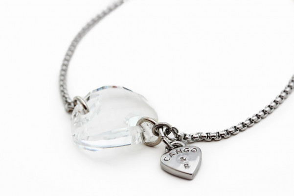 PLAN07K-es cikkszámú Cango&Rinaldi - PLANET COLLECTION - karkötő ezüst színű láncból. A karkötőn egy különleges csiszolású 18*18 mm-es fehér színű kristály található egy Cango&R feilratos charm-al díszítve. A karlánc márkajelzett fém zárral 220 mm-ig bármilyen méretben állítható. A charm-on lévő Cango&R feliratos gravírozás jelöli a brand eredetiséget és minőségét.