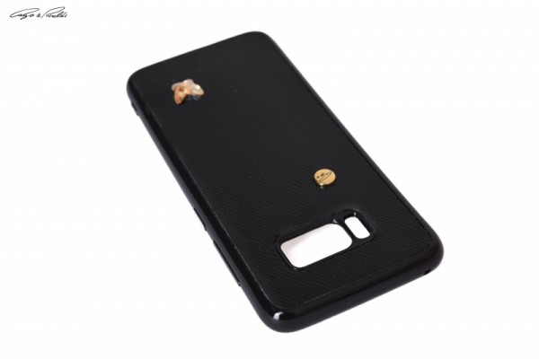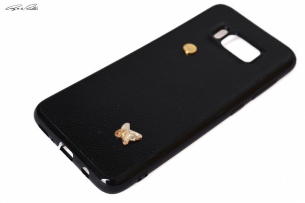 Lakk prada fekete színű olasz bőr Samsung tok, 1 darab különleges csiszolású 10*15 mm-es arany színű kristállyal díszítve. Szélesség: 70 mm Magasság: 149 mm Vastagság: 10 mm. A telefontok belsején Cango&Rinaldi mélynyomat található, illetve hátulja egy arany szinű Cango márkajelzett szegeccsel díszített, jelölve ezzel a brand erdetiségét és minőségét!