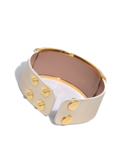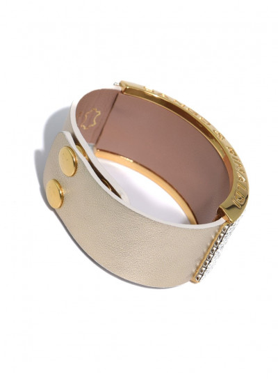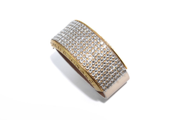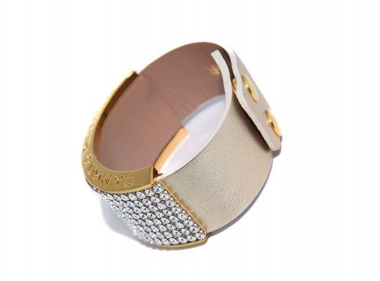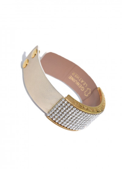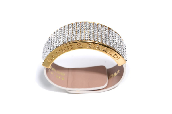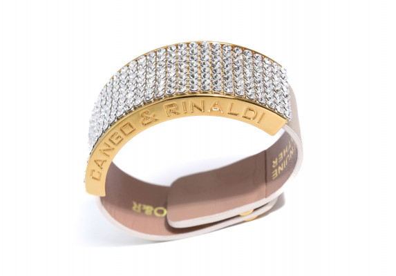 Cango&Rinaldi karkötő a - Klasszik kollekcióból - világos arany színű minőségi olasz bőrből, arany színű fém foglalatban 8 sorban fehér színű (001), mesh Swarovski kristályokkal díszítve.