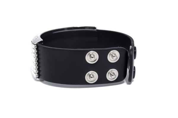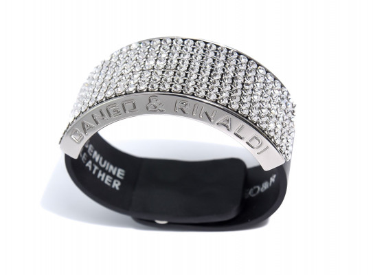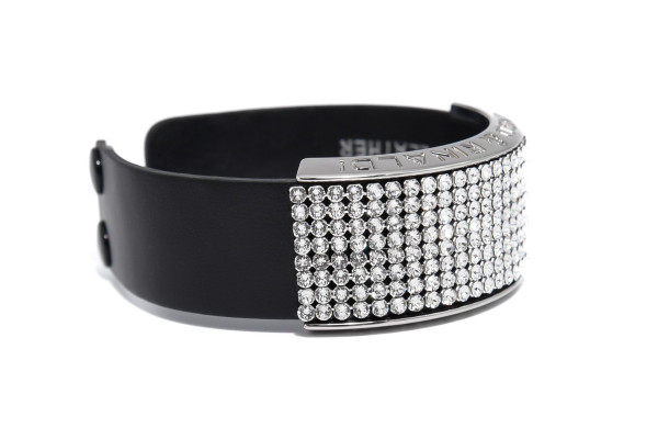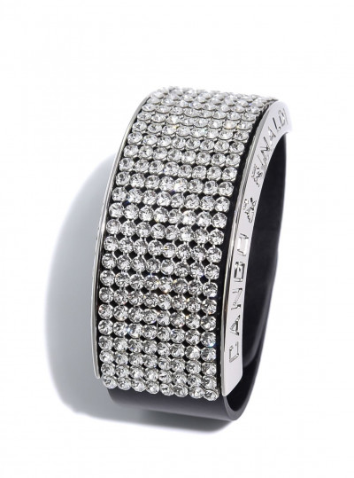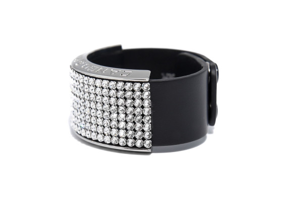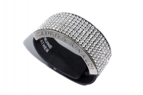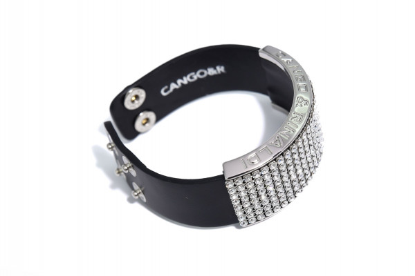 Cango&Rinaldi karkötő a - Klasszik kollekcióból - fekete színű minőségi olasz bőrből, nikkel színű fém foglalatban 8 sorban fehér színű (001), mesh Swarovski kristályokkal díszítve.