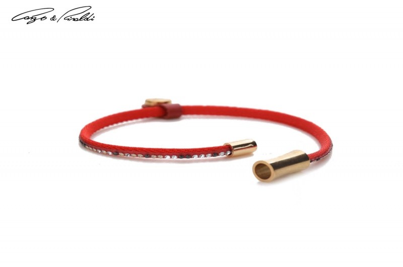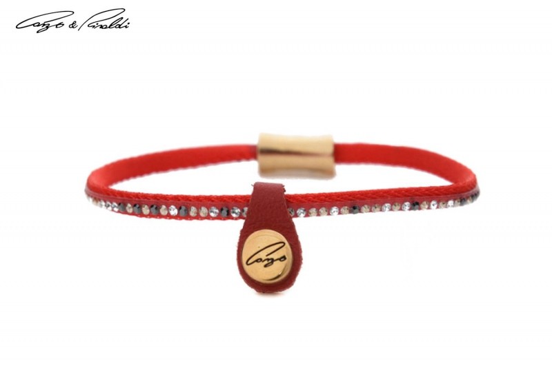 1248-as cikkszámú Cango&Rinaldi karkötő a "Emotion" kollekcióból, melyek szövetből olasz bőr alapanyagból készülnek, és a fém kiegészítőkkel alkotnak tökéletes egységet. A karkötő alapanyaga piros színű szövet és piros színű bőr ve multi színű Swarovski kristállyal díszítve. Karkötő méretei: 190 mm hosszú, 3 mm széles, 180 mm-en egy méretben mágneses hengerzárral kapcsolható. A karkötő közepén bőr alapanyagon egy fém szegecs található Cango felirattal, jelölve ezzel a brand eredetiségét és minőségét.